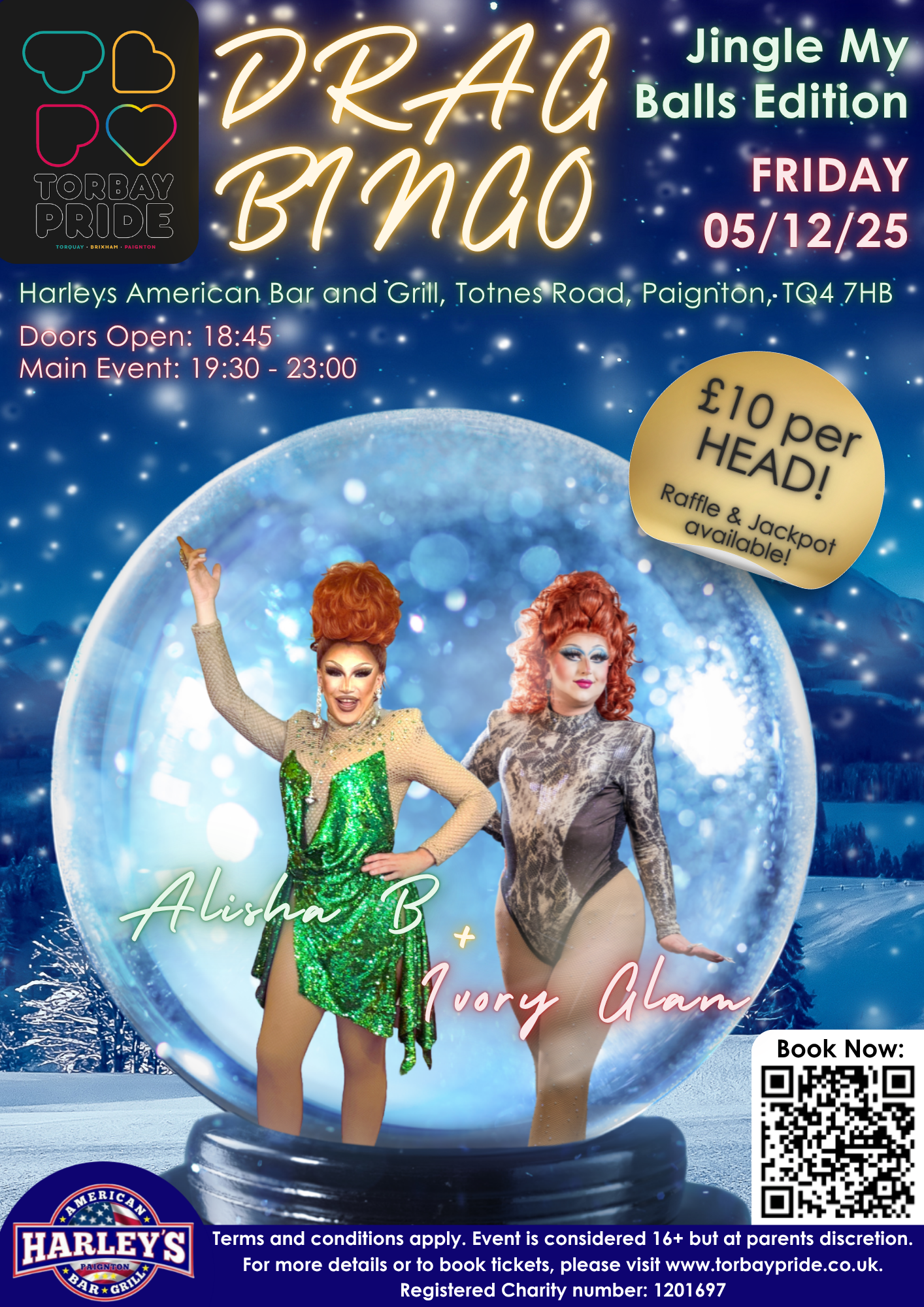 Join us at Harley's American Bar & Grill in Paignton for our Christmas Drag Bingo, Jingle My Balls Edition!